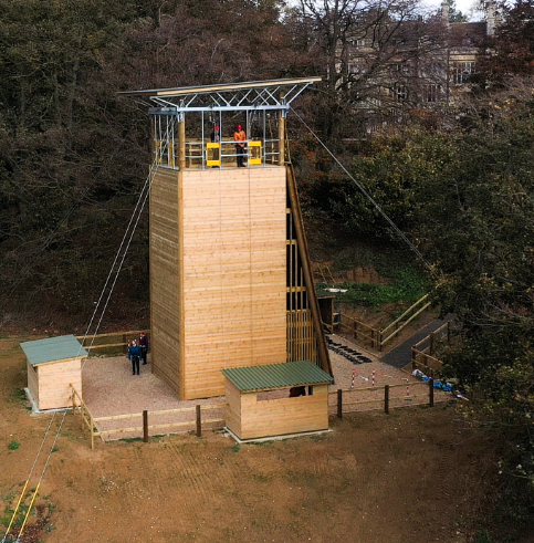 – A timber and steel linear course with gladiator challenges and leap of faith activities